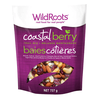 Wild Roots Coastal Berry Trail Mix starts with whole roasted almonds and cashews for crunch, with just a hint of salt added. Creamy yogurt chips, sweet cranberries, and blueberries are then added for the perfect blend of sweet and salty. The result is a deliciously simple snack that feeds your craving without all the empty fillers or preservatives you get in other products!
